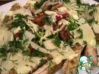 Сверху положить тонко порезанный сыр (или натереть на терке) Украсить мелкопорезанным укропом Приятного аппетита! |