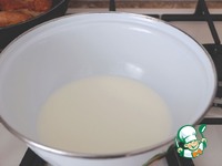 В теплое молоко добавить дрожжи (7 гр.), сахар (1 ст. ложку). Поставить смесь в теплое место для роспуска дрожжей. |