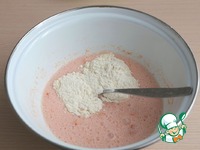 Из общего количества муки взять 2 ст. ложки, добавить в молочно-дрожжевую смесь. Смесь хорошо взбить вилочкой или венчиком. |
