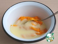 Пока поднимается тесто, можно заняться приготовлением начинки для булочек. В тыквенное пюре добавить 1 ст. ложку сгущенного молока. |