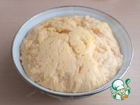 Замесить тесто. Емкость с тестом накрыть пищевой пленкой или полотенцем и поставить в теплое место для подъема. |