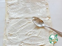 Лист лаваша разверните и смажьте всю поверхность сливочным сыром |