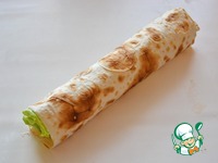 Сверните в плотный рулет. Есть можно сразу, или убрать в холодильник на пару часов, чтобы рулет пропитался |