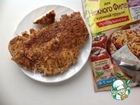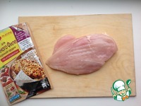 Лист для жарки "МAGGI для Нежного Филе куриной грудки по-итальянски" развернуть, поместить на одну половину куриное филе. |