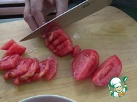 Выкладываем на лаваш слой помидоров. На него сверху сырно-беконную массу. Сверху поливаем майонезом и укрываем сверху еще одним слоем томатов. |
