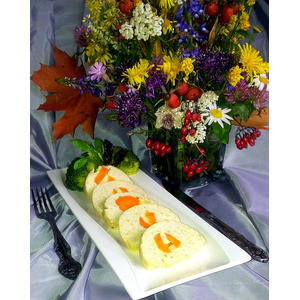 Описание: Вкусный, нежный рулет из филе индейки, овсяных хлопьев с сыром и морковью.