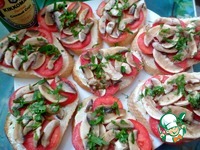 Нарезать любую зелень по вкусу и разложить сверху на грибы. |
