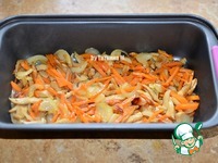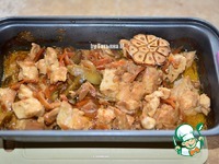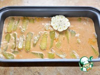 Залить соусом содержимое формы, сверху положить половинку головки чеснока; |