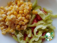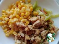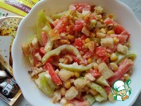 Описание: Салатик по составу простой, готовится быстро, а овощи с куриным мясом дружны.