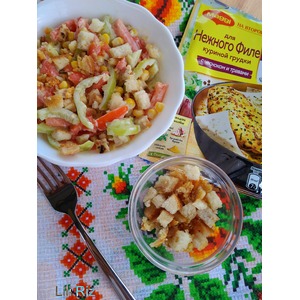 И по желанию добавить сухарики пшеничные с чесноком. |