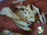 Готовое и остывшее куриное филе также нарезать тонкими слайдами. |