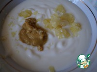Приготовить заправку. Йогурт смешать с горчицей и чесноком пропущенным через пресс. |