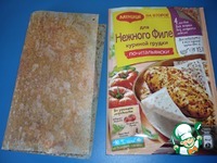Куриное филе отбейте до толщины 1,5-2 см. Разверните лист для жарки и положите на его половину одно филе куриной грудки. |