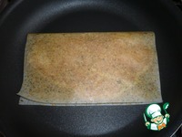 Без добавления масла разогрейте сковороду и положите на нее завернутую грудку. |