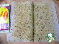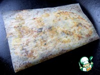 Накрыть второй половинкой листа и перенести в раскалённую сухую сковороду. Слегка прижать. Жарим около 5 минут, так как начинка будет ещё запекаться. |