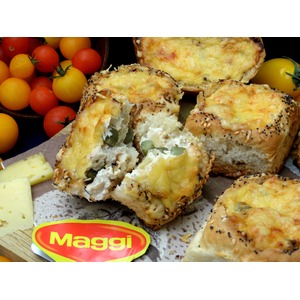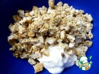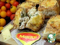 Описание: Идея подачи в булочках не нова..., подают в них и супы, и жульен, и салатики. Делюсь своей нежно-сырной начинкой с ароматной курочкой. Йогурт можно заменить сметаной, но будет калорийнее))) Берём с собой на прогулку... пошуршать опавшими осенними красочными листиками.