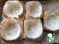 Срезать с булок крышечки, вынуть мякиш. Из горбушки тоже. |