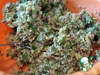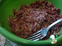 Сливочное масло растопить. Приготовить начинку: смешать фасоль, сыр, кинзу, влить растопленное масло, всыпать перец, все перемешать. |