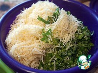 Сыр натереть на крупной терке, смешать с мелко порезанной кинзой. |
