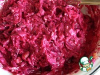 Для свекольно-чесночного салата вареную свеклу натереть на крупной терке, добавить изюм, измельченные орехи и чеснок. |