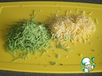 Пока жарится курица и бекон, подготовить сыр. У меня это два вида: зелёный (с песто) и российский. |