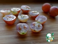 Крупные виноградины разрезать пополам и вынуть косточки. |