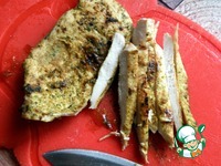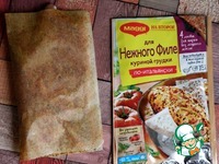 Куриное филе раскатать скалкой, выравнивая толщину. Выложить на листы ТМ Магги для нежного филе по-итальянски и хорошо прижать бумагу к филе. У меня были некрупные филе и мне хватило одного листа. |