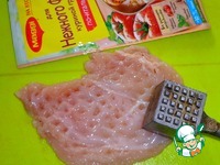 Куриную грудку слегка отбить молоточком. |