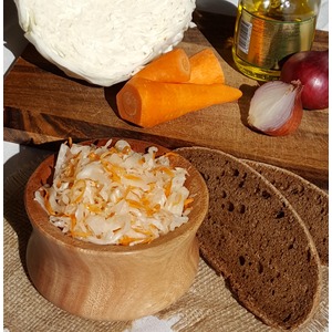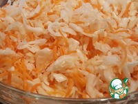 Банки: На мой взгляд самые удобные для такой капусты банки объёмом 1л. Банка должна быть чистой. Можно заквасить капусту в 3х литровой банке, но подумайте, будет ли в Вашем холодильнике столько свободного места через пару дней. И каждый раз доставать/убирать 3х литровую баночку немного сложнее, чем литровую. А так, дело хозяйское. Итак, указанное количество ингредиентов как раз плотненько утрамбовалось в одну литровую баночку. Сверху сразу выделился сок. При более сухой капусте сока может быть изначально чуть меньше. Не переживайте, просто плотно утрамбуйте капусту с морковью в банку. |