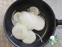 Лук нарезаем тонкими колечками, отправляем пассероваться на сковороду. |