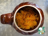 К луку добавляем натёртую на крупной тёрке морковь. Обжариваем вместе. |
