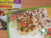 Приготовить филе в листе для жарки от Магги. Нарезать готовое филе кубиком. |