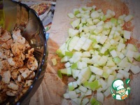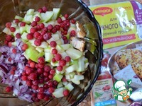 Описание: Курица отлично сочетается с фруктами. Предлагаю легкий салат из куриной грудки, яблока и брусники. Угощайтесь.