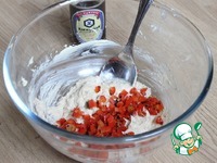 Пока филе готовится, делаю соус. Перец режу полосками и запекаю их на гриле до румяных полосочек (3-4 минуты). Затем остужаю его и мелко режу. |