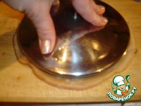 Готовые блинчики я обрезала крышкой с острыми краями от маленькой кастрюли. |