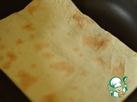 Лаваш разрезать на две части. Подсушить на сухой сковороде. |