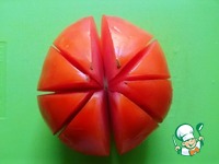 Помидор разрезаем на 8 долек, не дорезая до конца. |