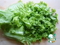 Равномерно распределяем нашинкованные листья салата между салатниками, поверх укладываем помидор. |