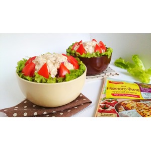 В середину помидорных "лепестков" помещаем куриный салат - и можно подавать! |