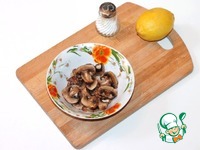 1. Шампиньоны нарезать пластинками, полить лимонным соком (1/4 лимона), посолить, перемешать и оставить мариноваться. |