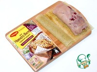 5. Достать 1 лист для жарки куриной грудки и раскрыть. Положить куриное филе на его половину и прикрыть второй половинкой листа. |