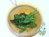 7. Шпинат на одну минуту опустить в кипящую воду, затем откинуть на дуршлаг. |