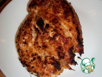 Куриную грудку отбить. Развернуть лист для жарки, на одну его половину положить куриную грудку. Накрыть второй половиной и прижать рукой. |