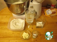 Приступим к изготовлению теста. Нам потребуется следующее: 1. Мука - 280г. 2. Вода – 116г. 3. Соль – 7.5г. 4. Сахар – 30г. 5. Масло сливочное – 18.25г. |