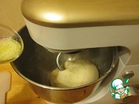 Вымешиваем тщательно. В середине вымешивания, когда тесто уже сформировалось, добавляем растопленное сливочное масло. Масло должно быть комнатной температуры, не горячее! |