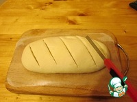 Острым лезвием делаем на них косые надрезы. Я для этого использую смоченный водой канцелярский нож. Простым ножом тяжко, тесто очень мягкое. |