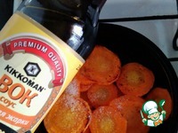 Выложить морковь на разогретую сковороду с растительным маслом, сразу же добавить воду. Тушить до мягкости под закрытой крышкой на среднем огне. |