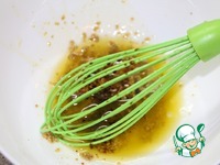 Для заправки смешать растительное масло с горчицей, лимонным соком, соевым соусом, взбить венчиком, отрегулировать вкус сахаром (я использую мед) |