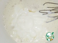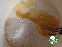 Яйца с сахаром немного взбиваем венчиком, вводим пудинг. |