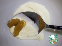 Для соуса смешать сметану с горчицей. Булочку разрежем пополам вдоль. Ее можно поджарить или прогреть в СВЧ 10 секунд. |